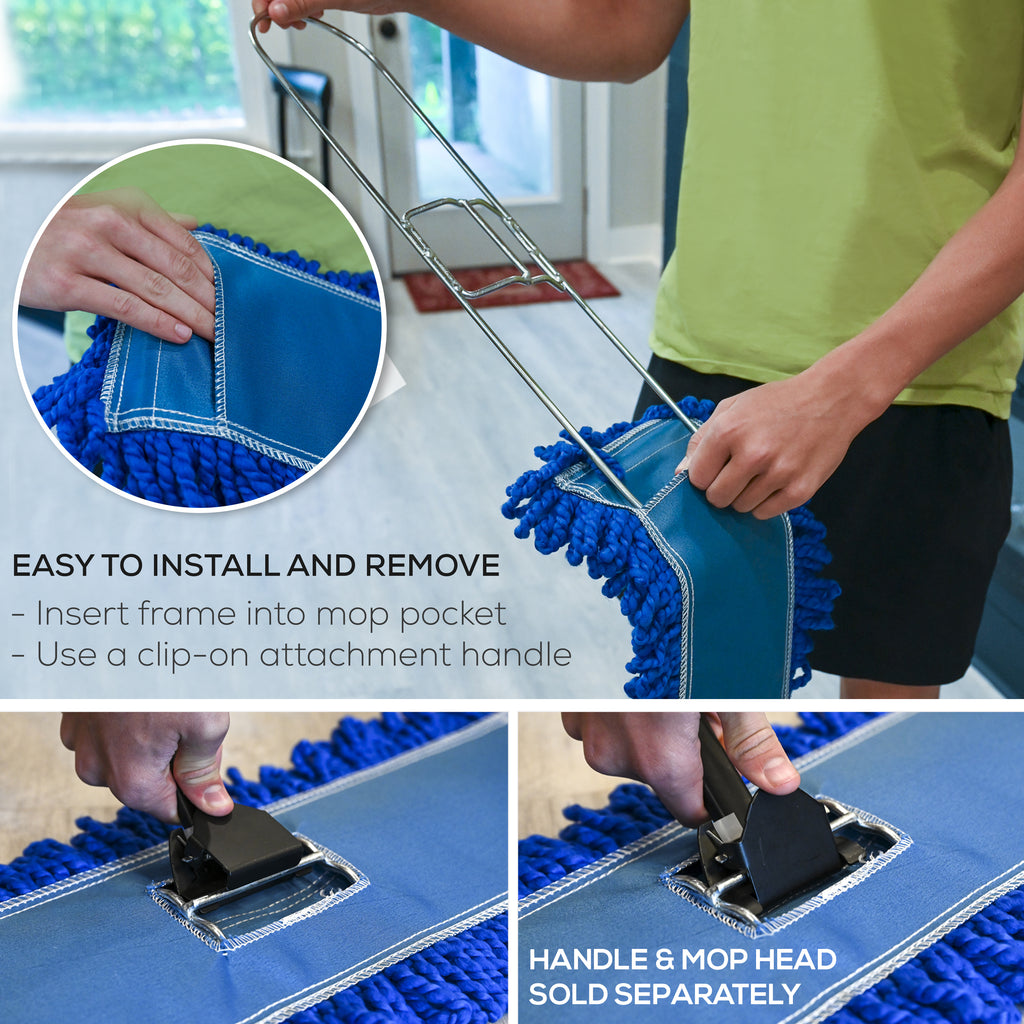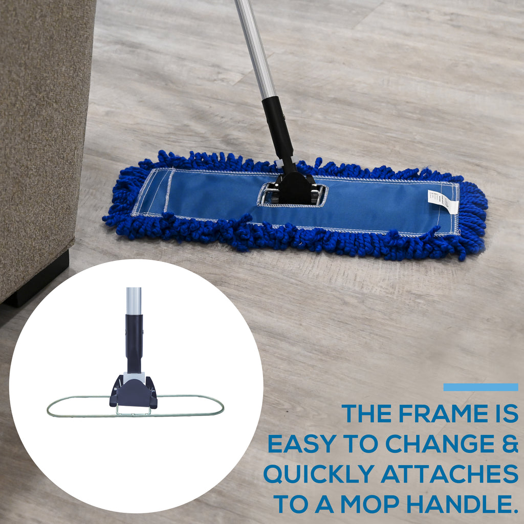 - Easy to Install and Remove: The dust mop frame quickly and easily attaches to standard dust mop heads. Compatible with a dust mop pad with slip-on backing, this frame is convenient to attach to existing handles for commercial or industrial cleaning. Using a large dust mop is a simple and effective way to clean large floors so you can save time and energy, while increasing efficiency.