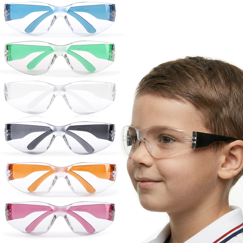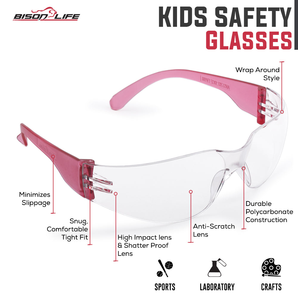 Crystal Kids Protective Safety Glasses are made out of ultra-resilient scratch-resistant polycarbonate material, offering impact protection against flying particles and liquid splatter. Our Safety Glasses exceed ANSI Z87.1 standards, provide protection against UV rays, and feature a clear, anti-scratch coating. Sleek, compact appearance and stylish unitary lens provide a wide field of vision. Best fit for children between the age of 3 to 13 years.